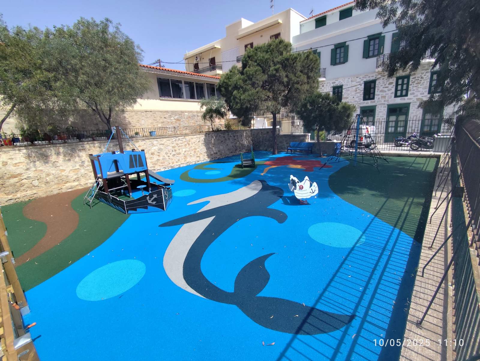 The Ermoupolis Kindergarten has been co-located with the 5th Primary School for several decades. Following a request by the teaching staff and parents to utilize an adjacent vacant area and create an outdoor space exclusively for the kindergarten pupils, AIGEAS AMKE supported the construction and certification of a modern playground, inspired by the island’s distinct identity and its close connection to the sea.