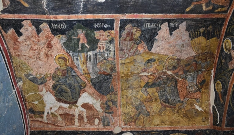 Οι φθορές του ζωγραφικού διακόσμου ήταν εκτεταμένες, λόγω της ετερογένειας και της γήρανσης των υλικών, των νεότερων επεμβάσεων, καθώς και των επιπτώσεων των περιβαλλοντικών παραγόντων. Ανταποκρινόμενη στο αίτημα των κατοίκων του ιστορικού χωριού, η ΑΙΓΕΑΣ ΑΜΚΕ ανέλαβε την εκπόνηση της μελέτης συντήρησης του ζωγραφικού διακόσμου του ναού, καθώς και τις απαραίτητες εργασίες εφαρμογής της, ώστε να διασωθεί και να αναδειχθεί αυτό το εξαιρετικής τέχνης σύνολο.