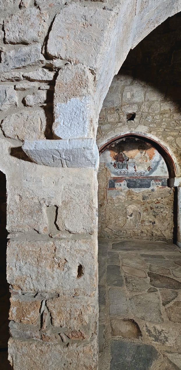 Ο ναός είναι δίκλιτος, με δύο ημικυκλικές αψίδες στα ανατολικά και νάρθηκα στα δυτικά. Τα κλίτη του καλύπτονται με ημικυλινδρικές καμάρες, οι οποίες φέρουν δίρριχτες κεραμοσκεπείς στέγες, ενώ ο νάρθηκας καλύπτεται με καμάρα στο βόρειο τμήμα και ημισφαιρικό τυφλό θόλο στο νότιο. Στο ανατολικό τμήμα του ναού και στο Ιερό σώζονται τοιχογραφίες του 18ου αιώνα, που συνδέονται με το καλλιτεχνικό περιβάλλον του αργείου ζωγράφου Γεωργίου Μάρκου.