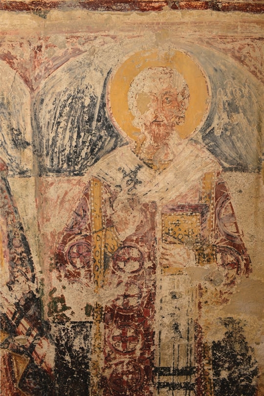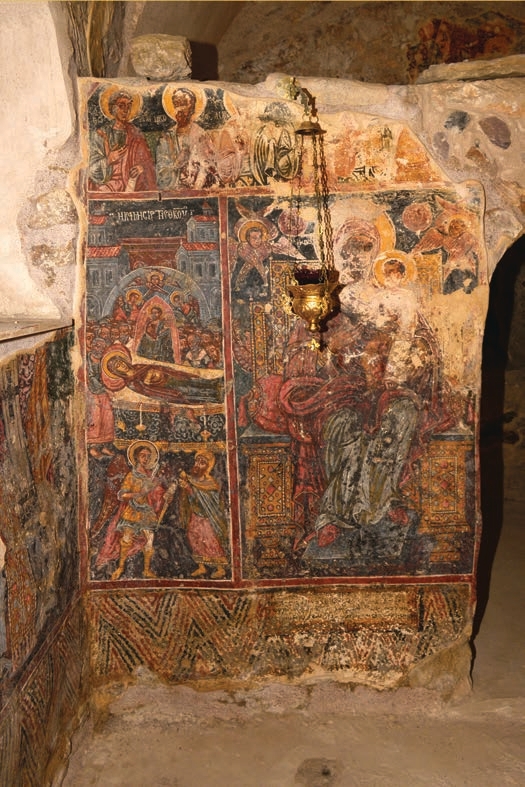 Στο εσωτερικό διατηρούνται δύο στρώματα τοιχογραφιών. Το αρχαιότερο στρώμα, που καλύπτει τους πλάγιους τοίχους και το ιερό βήμα, διακρίνεται για την υψηλή ποιότητα εκτέλεσης και τη μικρογραφική λεπτομέρεια του ζωγράφου, ο οποίος φαίνεται να ανήκει στη σχολή των Δημητρίου και Γεωργίου Μόσχου. Το δεύτερο στρώμα, στον νότιο τοίχο και το τέμπλο, συνδέεται με τη λαϊκή ζωγραφική παράδοση της Μεσσηνιακής Μάνης του 18ου αιώνα.